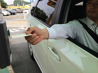 お帰りの際は、出口の自動精算機をお使いいただき、駐車券を精算機に入れて頂くと、ご利用時間に応じて料金が表示されます。